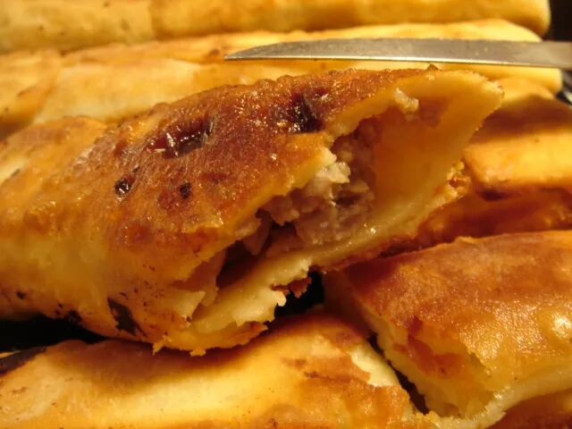 相传在清朝光绪年间,有姓金的一家人在沈阳北门里开设烧饼铺谋生。因经营不善,生意惨淡,门可罗雀。一日正值中秋节,生意更加萧条,时至中午尚不见食客上门,店主茫然,遂将铁匣内几枚铜钱取出,置办了些牛肉,回家细剁成馅,并将面皮擀得薄如蝉翼,一折一叠地包拢起来,准备以慰节庆之需。就在这时,从外面忽然进来一位差人,被锅中饼食的别致外形所吸引,一经尝鲜,顿时赞不绝口。他急令店主,再烙一盒,速送馆驿,那里的人尝后,无不拍案叫绝。自此,这饼食声名鹊起,风靡一时,官民争相品尝,金氏烧饼铺的生意,如同凤凰涅槃,浴火重生,从此蒸蒸日上。因这饼食让人回味无穷,便得了“回头”之名,意喻食客吃了还愿再来。