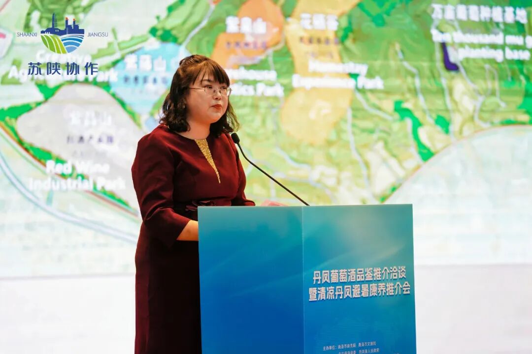 贾永安在致辞中说,丹凤葡萄酒品鉴推介洽谈暨清凉丹凤避暑康养推介会的举行,是进一步深化苏陕协作、宁商携手、雨丹合作,高质量推动东西部协调发展、助推巩固拓展脱贫攻坚成果同乡村振兴有效衔接的务实之举。近年来,商洛市聚焦绿色循环发展定位,围绕打造“一都四区”、推进西商融合发展目标,坚持把葡萄酒作为丹凤县域经济高质量发展的首位产业来抓,着力建基地、强龙头、促融合、聚集群,形成了以丹凤葡萄酒厂、商山红葡萄酒厂、百年凤驹葡萄酒厂、丹凤酒庄、东凤酒庄、安森曼酒庄、葡萄星球酒庄“三厂四庄”为龙头的葡萄酒产业集群,走出了一条集葡萄种植、观光、采摘、葡萄酒酿造、储藏、销售、体验为一体的三产融合产业发展新路子,有力助推高质量发展。
