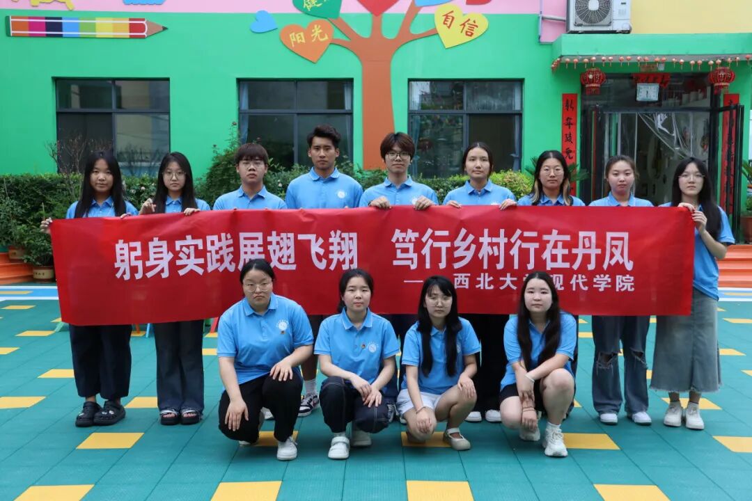 支教初衷 夏意渐浓,时光清浅。为深入贯彻党的“三下乡“方针,西北大学现代学院组织了商洛丹凤夏乡趣支教队,深入农村,提升学生的综合能力。 迎着微微细雨, 2024年7月7日早上11点,西大现代学子三下乡团队在学校集合搭乘校车,从学校出发到达火车站集合赶赴商洛市丹凤县江南幼儿园。 下午17点20到达丹凤县,校方包车迎接三下乡支教团队,到达学校后参加三下乡支教活动启动仪式,园长进行简短讲话,表达对支教团队的欢迎。 支教队员为江南幼儿园的孩子们带来了丰富多彩的课程和活动。结合孩子们的年龄特点和兴趣爱好,设计了一系列寓教于乐的课程,如口才,思政,汉字等。此外,队员们还组织了礼仪操,健美操,户外游戏等活动,让孩子们在轻松愉快的氛围中度过一个难忘的假期。 教育教学活动 队员们注重激发孩子们的创造力和想象力。例如,在健美操课上,鼓励孩子们大胆尝试,跟随节奏跳跃,舞蹈。 日常管理活动 除了课堂教学,队员们还参与了学校的日常管理工作,如协助食堂准备午餐,确保学生安全,安静的午休。队员们认真负责引导孩子落实午休安排,确保每个孩子都能按时休息,为下午的学习做好准备。 现场照片