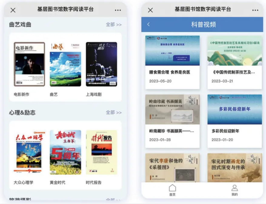基层图书馆数字阅读平台支持在线阅读、下载阅读、在线观看视频等多种阅读方式,为公共图书馆读者提供便捷性、大容量、实时获取的在线阅读体验,降低纸质书阅读成本。