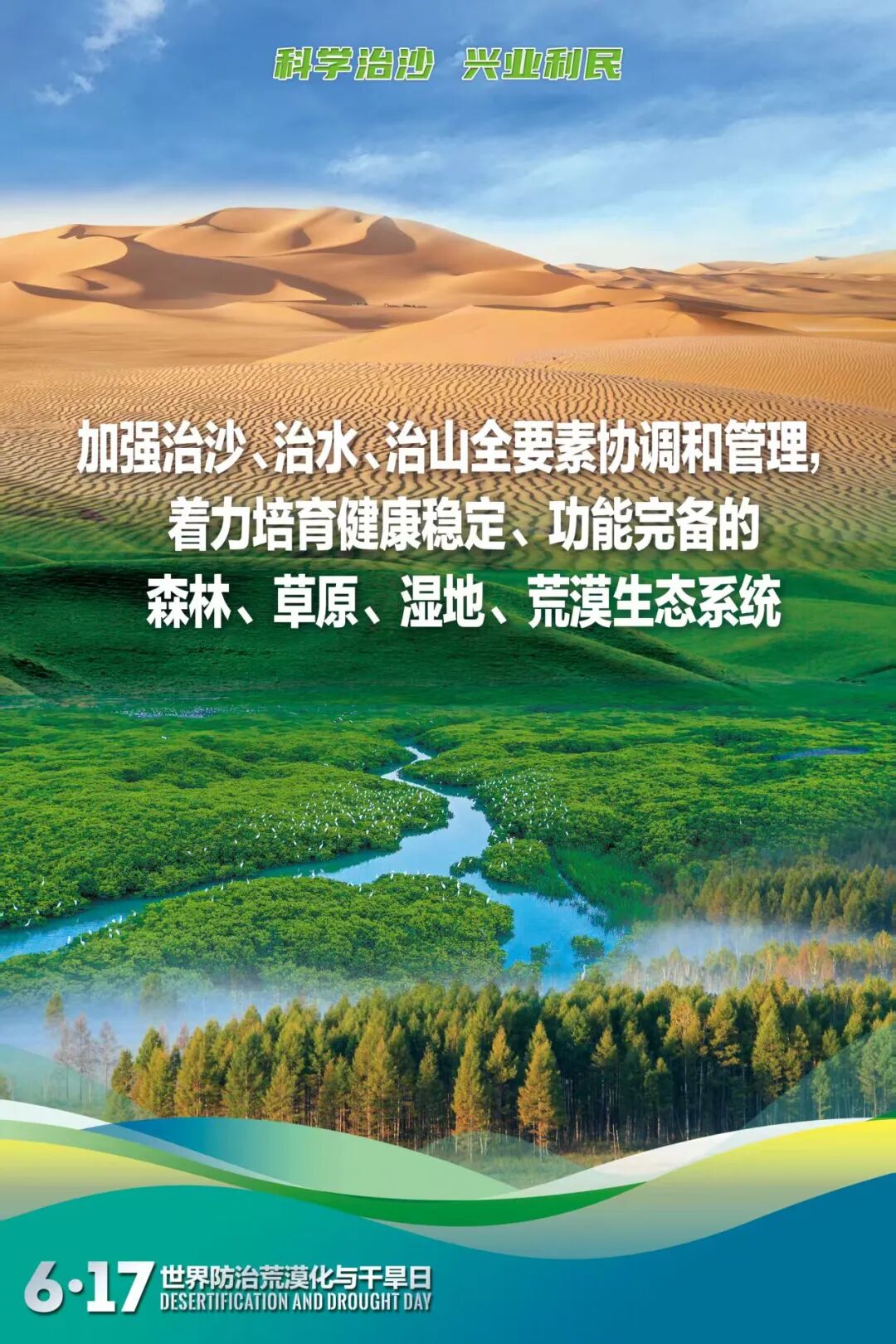 2025年“世界防治荒漠化和干旱日”的国际主题是:“恢复土地,释放机遇”(Restore the Land. Unlock the Opportunities),这一主题强调通过土地恢复创造就业机会、促进粮食和水安全、支持气候行动以及建设经济复原力,旨在揭示土地恢复的多重效益。我国主题为:“科学治沙,兴业利民”。
