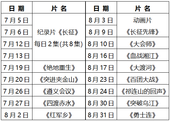 “追随红军足迹,重温红色经典”公益影视展播节目单