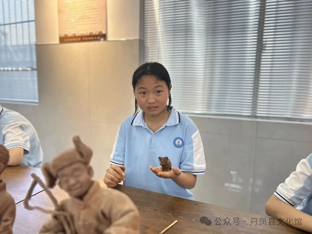 活动一 泥塑课堂 6月5日,市级非遗丹凤泥塑走进商镇中学。丹凤泥塑市级代表性传承人王伦老师为学生们展示了部分泥塑作品,并现场教授学生们体验制作狗娃咪。在王老师的带领和指导下,普普通通的红胶泥变成了能发出清脆声音的狗娃咪。学生们在课堂上重温了玩泥巴的快乐,体验了泥塑创作的乐趣,传统文化的种子也在青少年心底渐渐萌芽。感受非遗魅力,保护与传承非遗文化任重而道远。