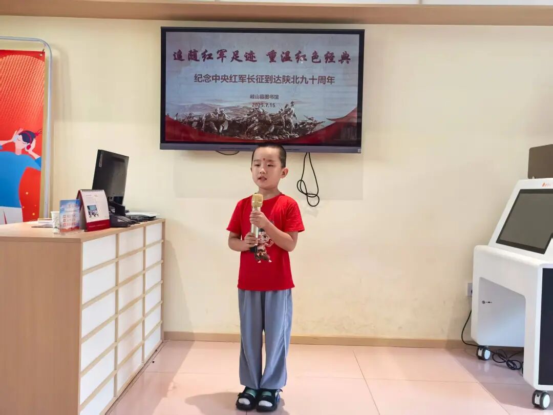 为纪念中央红军到达陕北90周年,传承和弘扬伟大的长征精神,缅怀革命先辈的丰功伟绩,7月15日,岐山县图书馆在县城市书房・广电网络阅读空间举办了“追随红军足迹,重温红色经典”长征诗词主题朗诵活动,30多位读者齐聚一堂,以诗歌朗诵的方式,在诗词的韵律中重温长征峥嵘岁月,感受伟大长征精神。 “在历史的长河中,有一段征程,波澜壮阔,气吞山河。在岁月的画卷里,有一首史诗,荡气回肠,刻骨铭心。”伴随着两位小主持人徐凡柠、王梓桐精彩的开场白,诵读活动在庄重而热烈的氛围中拉开帷幕。首先上场的牛译涵小朋友,他朗诵了《念奴娇·昆仑》,用昂扬的激情点燃了整个会场。接下来,《七律·长征》《清平乐·六盘山》《忆秦娥·娄山关》《清平乐·会昌》等一首首毛泽东主席的经典长征诗词被深情演绎。除了经典诗词,还有以长征为主题的现代诗歌、故事也在活动中精彩呈现。《长征颂》《长征路,英雄路》《长征精神》》等诗朗诵,以生动的语言描绘了长征的历史画卷,让听众仿佛置身于那个战火纷飞、热血沸腾的年代。而《永恒的丰碑》《半截皮带》等小故事,更是承载着红军战士对革命的无限忠诚和坚定信念。朗诵者们声情并茂的表演,赢得了现场观众的阵阵掌声。 此次长征诗词主题朗诵活动的成功举办,为读者提供了接触和了解优秀革命文化的机会,让长征精神在新时代焕发出新的活力,激励大家在新时代的征程上,不忘初心,砥砺前行。(雷红梅)