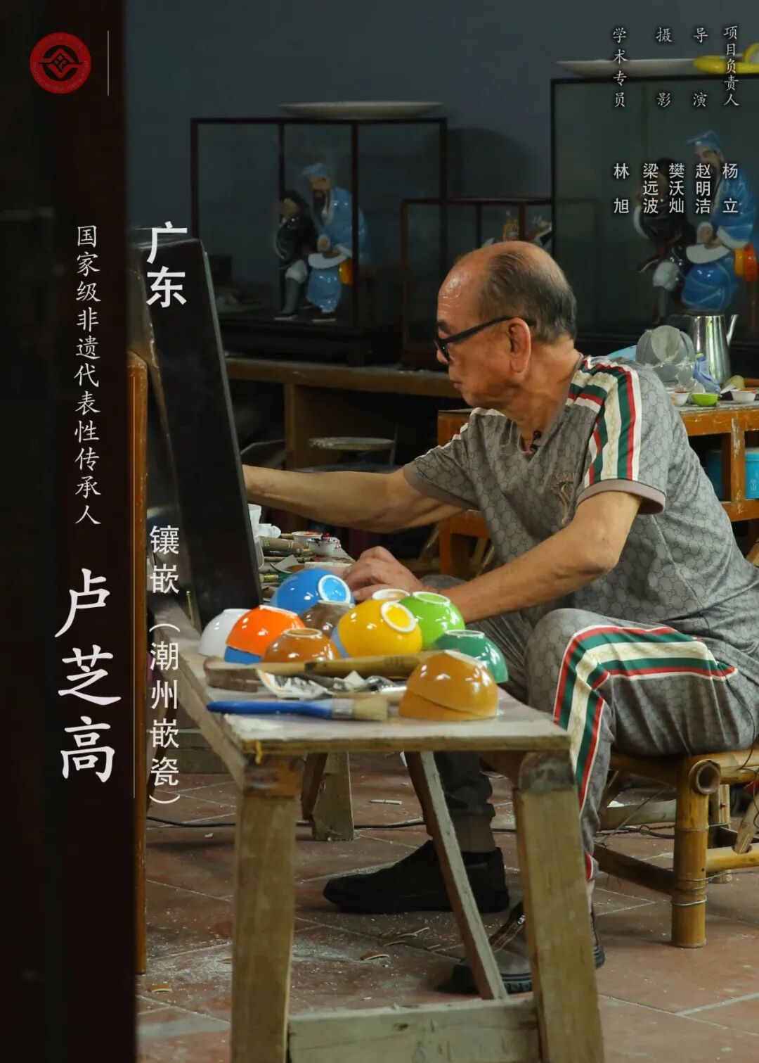 传统美术 卢芝高——镶嵌(潮州嵌瓷) 卢芝高,1946年出生,男,汉族,广东省潮安县人,国家级非物质文化遗产项目镶嵌(潮州嵌瓷)代表性传承人。出身于潮州嵌瓷艺术世家。1964年高中毕业后师从父辈学习古建筑嵌瓷壁画工艺,潜心钻研并熟练掌握嵌瓷设计、选材选色、辅料锻造及具体操作等整个流程,并具备独立工作能力。在继承传统基础上不断摸索,对嵌瓷技艺有所突破和发展。从艺五十多年,平嵌、浮嵌、立体嵌得心应手,花卉树木、飞禽走兽、戏曲人物样样精通,创作了诸多人们喜闻乐见的优秀作品。积极授徒传艺,已培养一批熟练掌握嵌瓷技艺并能独当一面的学生。 观看入口 长按识别二维码观看精彩内容