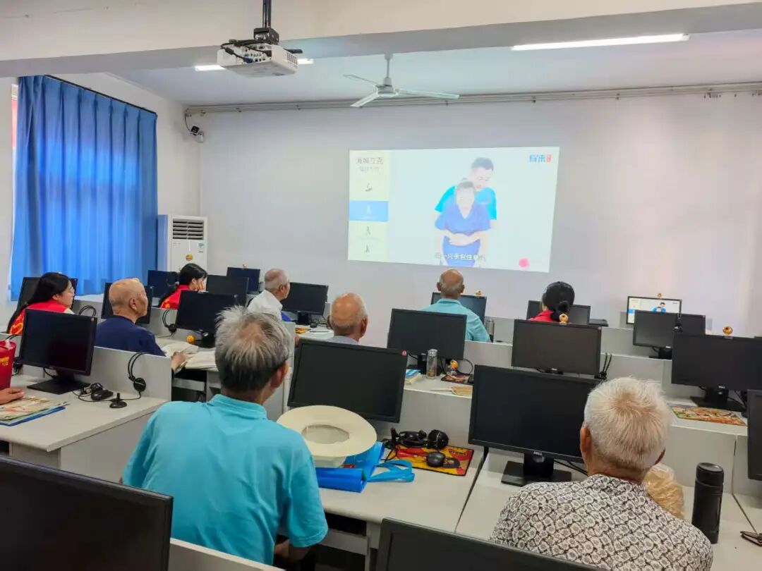 急救技能教学环节更显干货满满。赵可盈通过视频演示与现场讲解相结合的方式,重点传授海姆立克急救法、心梗突发应对等实用技能。"按压时左手在下呈掌根状,右手重叠扣紧,双臂伸直垂直用力......" 她边示范边叮嘱动作要领,确保每位老人都能清晰掌握。互动答疑环节中,针对 "高血压患者饮食禁忌"" 关节养护方法 " 等问题,她逐一耐心解答,现场氛围热烈。
