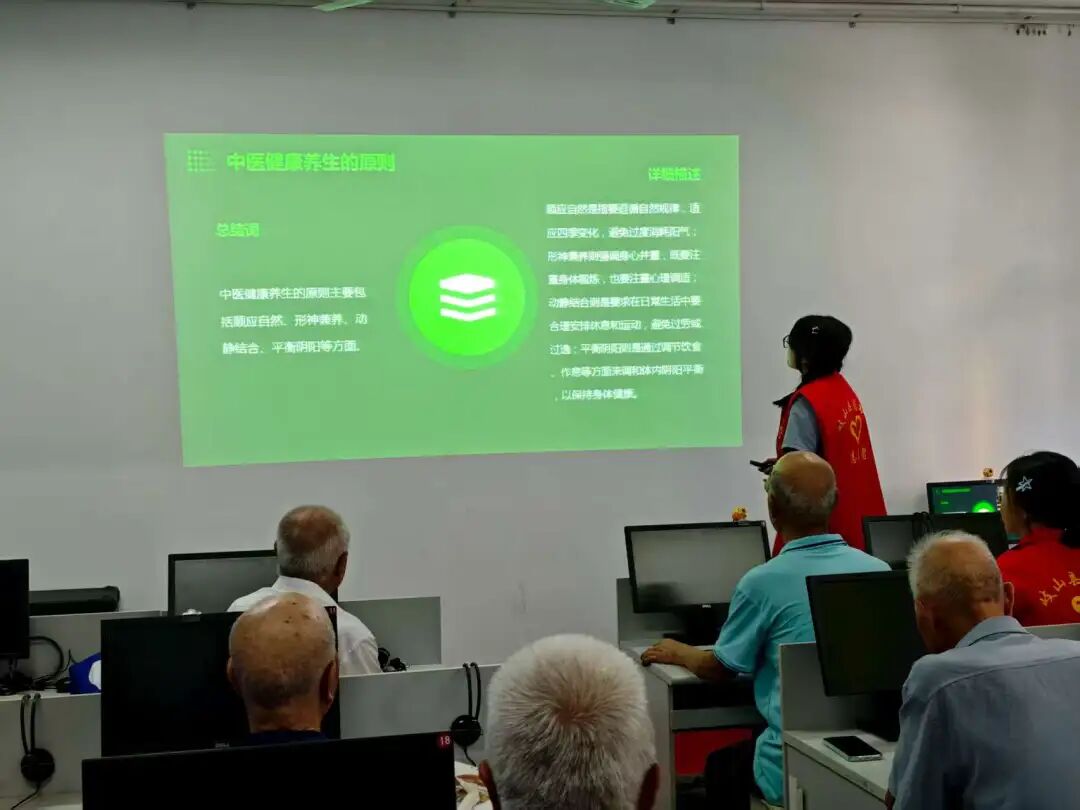 本次讲座由医学专业出身的大学生志愿者赵可盈主讲。她凭借扎实的专业功底,通过图文并茂的PPT 展开生动授课:在饮食养生环节,针对老年人肠胃功能特点,细致讲解 "少食多餐"" 少油少盐 " 的饮食原则,强调主食粗细搭配、果蔬多样化的重要性,并结合四季气候特点推荐应季食谱,如春季养肝粥、夏季祛湿汤等,实用建议获现场老人频频点头称赞。