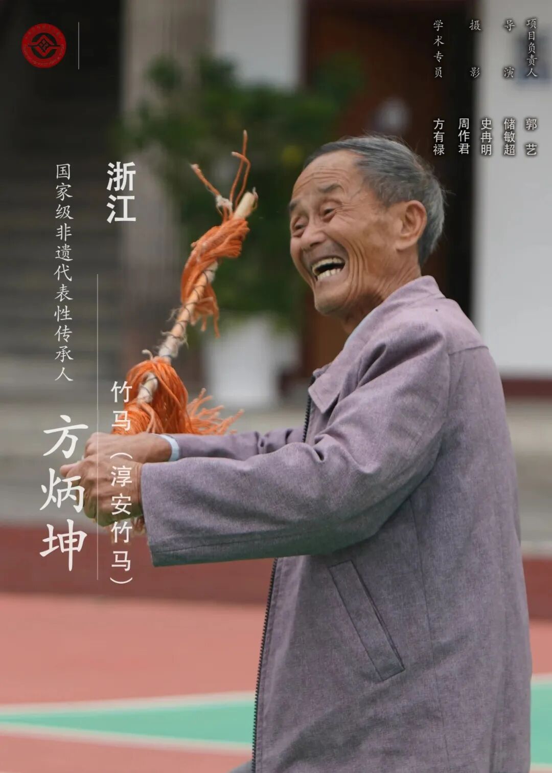 传统舞蹈 方炳坤——竹马(淳安竹马) 方炳坤,1939年出生,男,汉族,浙江省淳安县人,国家级非物质文化遗产代表性项目竹马(淳安竹马)代表性传承人。1953年开始,跟随伯父方德林学习竹马表演。1956年至1989年,在淳安睦剧团担任演员,从事剧团竹马表演,并在宋村、庙畈、常锦里、墙里等三角戏竹马班从事竹马表演和指导工作。1992年以来,一直从事淳安竹马的表演和传承工作,先后担任千岛湖五龙岛竹马队、新苑艺术团、千岛湖镇第一小学(省级竹马教学传承基地)、梓桐镇黄村竹马队、宋村乡世兰艺术团、县业余睦剧团的竹马指导老师。掌握淳安竹马传统表演步法十余种、阵式二十余种以及唱念和词曲调的资料等。曾多次参加国家、省、市、县各类竹马表演活动、电视台节目录制,指导团队参加民间广场歌舞大赛获得中国民间文艺山花奖等多项荣誉。 观看入口 长按识别二维码观看精彩内容