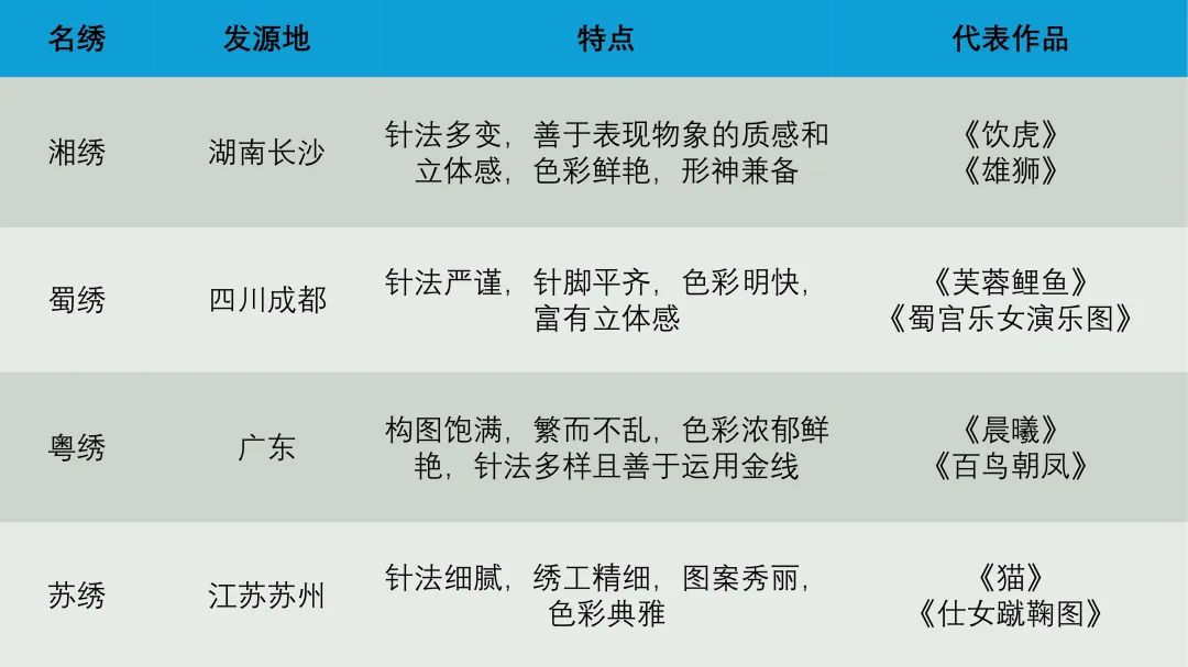 针舞线歌 锦绣山河 当蚕丝在指尖化作流淌的星河,当绣针在绸缎上跳起动感的舞步,中华大地便绽放出四颗璀璨的刺绣明珠。苏绣的清雅如江南烟雨,湘绣的雄浑似楚地雄风,粤绣的浓艳若岭南骄阳,蜀绣的灵动像巴山夜雨。四大名绣,以千万针脚丈量岁月,用五彩丝线编织文明,它们既是指尖上的千年绝艺,更是锦绣山河的立体诗篇,在经纬交错间诉说着华夏民族的审美密码与文化基因,向世界展示着东方美学的独特魅力。