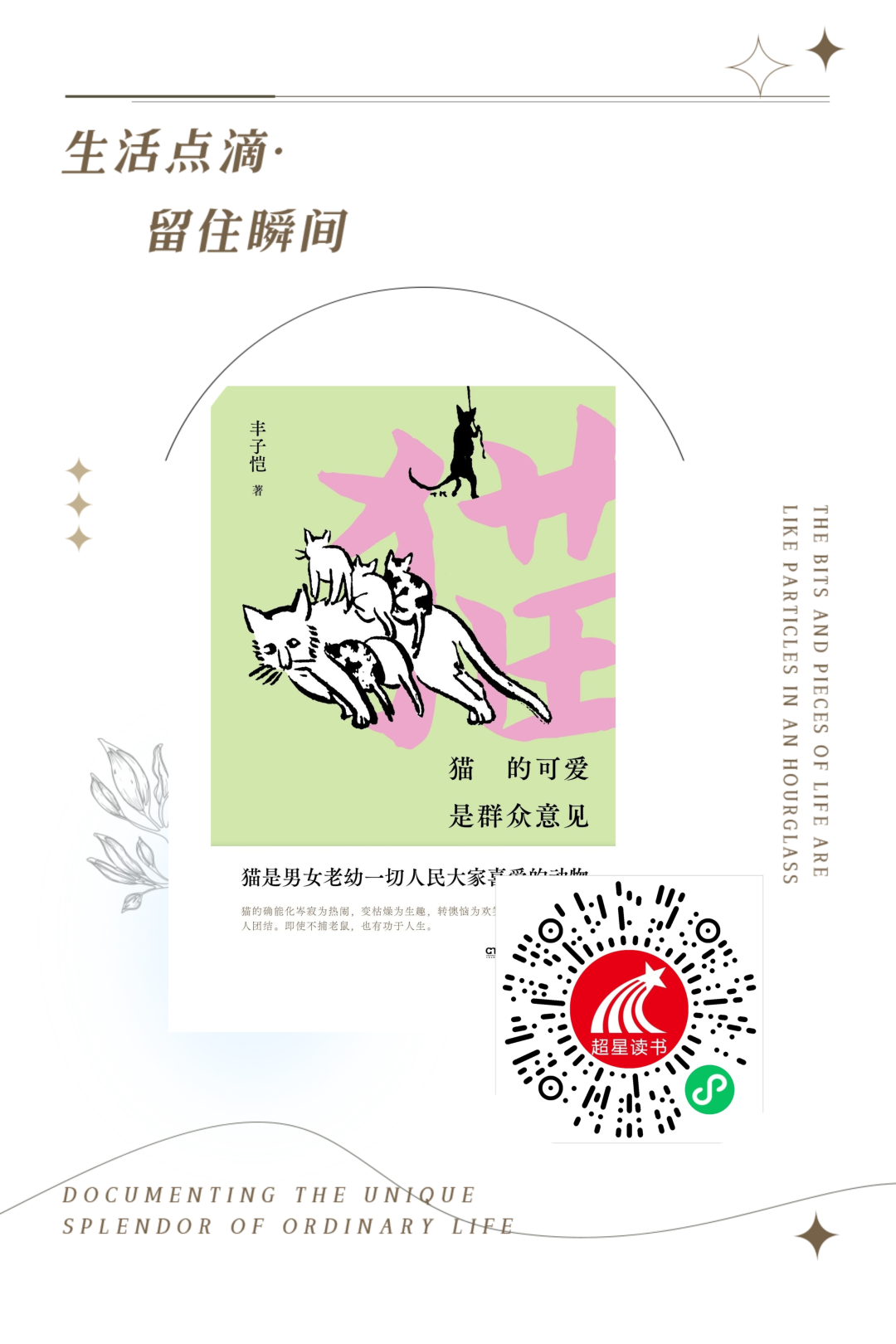 《猫的可爱是群众意见》讲述了中国现代漫画事业的先驱丰子恺先生笔下的猫,或陪伴主人读书看报,或配合孩子嬉戏玩闹,虽然偶尔偷食,惹人生气,但始终与人相伴,共度时光。本书精选数篇丰子恺以猫为主题的散文,从中可见丰先生对猫的喜爱、对生活的热爱以及对艺术的追求。