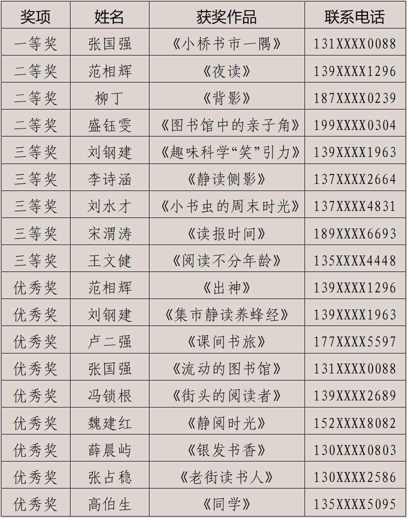 具体领奖时间将电话告知,如有疑问,敬请垂询。