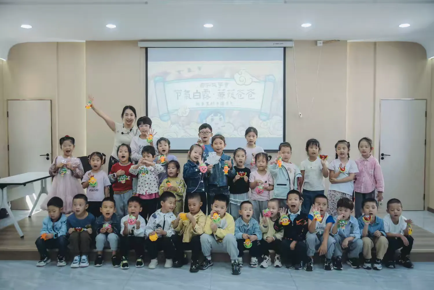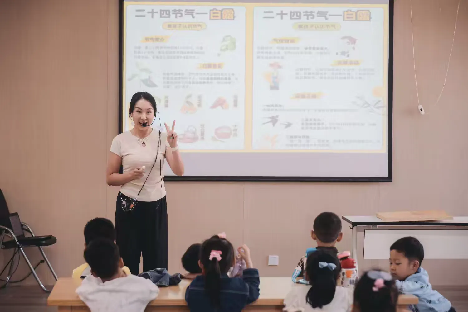 白露之名,源于大地上的露水开始增多,清晨的草地、叶片上都会有晶莹的露珠,如同白银般闪闪发光。活动开始,心宇老师带着小朋友们走进了白露节气的课堂。她首先向孩子们介绍了白露的三候:“一候鸿雁来,二候玄鸟归,三候群鸟养羞。”随着老师的讲解,孩子们仿佛感受到了那习习凉风和晶莹白露。接着,心宇老师又给孩子们讲述了白露的传统习俗。她绘声绘色地讲着“抓十白”,孩子们听得津津有味。